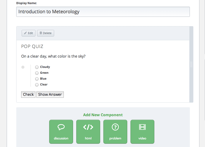 Quickly create videos, text snippets, inline discussions, and a variety of problem types.